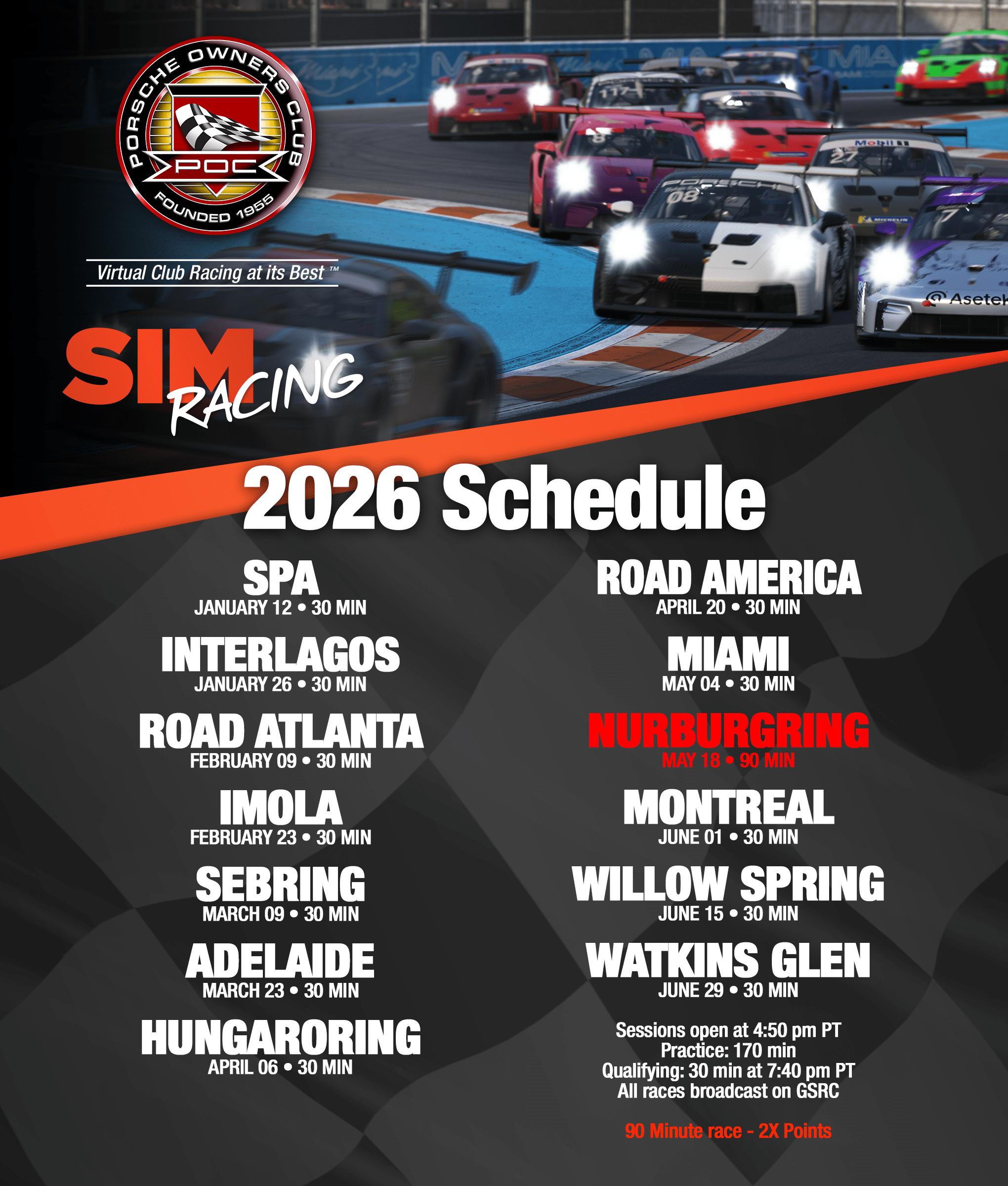 Sim Racing YouTube Events Season 2026-1 Season 2025-2 Season 2025-1 Season 2024-2 Season 2024-1 Season 2023-2 Season 2023-1 Season 2022 Season 2021 Season 2020/2 Season 2020/1 2020/S1 Round 1 Weathertech Raceway Laguna Seca 2020/S1 Round 2 | Las Vegas Motor Speedway 2020/S1 Round 3 Sonoma Raceway
